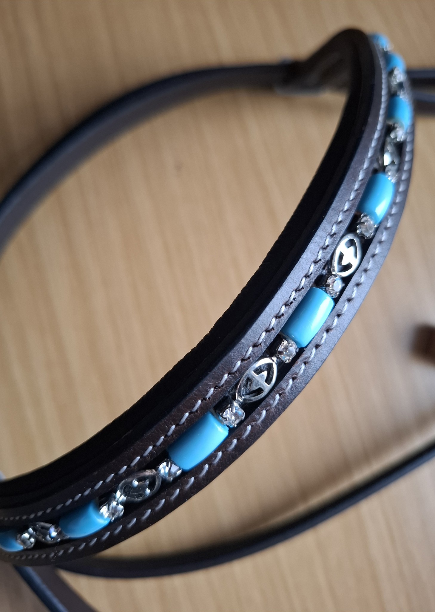 Ledersidepull mit türkisen Verzierungen